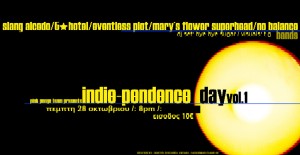 Η γιορτή έχει ξενόγλωσσο τίτλο και τα ελληνικά δεν θα έχουν μεγάλη συμμετοχή στα lyrics (αφού άλλωστε με ένα ΑΕΡΑΑΑΑΑ! πατήσαμε τις χιονισμένες παλγιές της Πίνδου). Έτσι την Πέμπτη 28 Οκτωβρίου θα πραγματοποιηθεί το festival με τίτλο Indie-pendence Festival Vol.1.Είναι μια συνεργασία της Pink Pongo Team με την Kazandb productions.