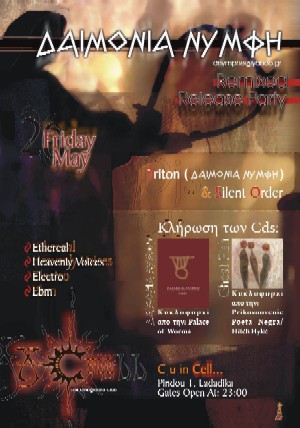 Το Χcell παρουσιάζει ένα ethereal party αφιερωμένο στους Δαιμονία Νύμφη με αφορμή την κυκλοφορία του νέου τους δίσκου Daemonia Nymphe remixed .Την παρουσίαση του άλμπουμ τους που θα κυκλοφορήσει από την Ιταλική "Palace of Worms", θα συνοδεύσει μουσική που θα παραπέμπει στην παλιά 4AD την Projekt και την Hyperium καθώς και από όλο το φάσμα της